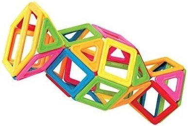 Magnetni mnogokotniki povezujejo 2D in 3D gradnjo. Otroci med igro urijo fino motoriko, prostorsko predstavo ter osnove geometrije in logike.