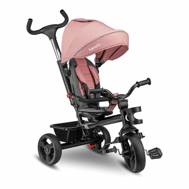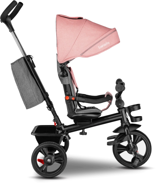 Tricikel LIONELO Haari 2v1 je odličen spremljevalec za sprehode in prve samostojne vožnje. Z vrtljivim sedežem lahko otrok sedi obrnjen proti staršu ali v smeri vožnje. Brezzračne pnevmatike iz kakovostnega PU materiala z dezénom zagotavljajo gladko, tiho in stabilno vožnjo po različnih podlagah.