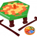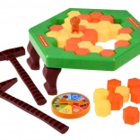 Igra razvija strateško razmišljanje in fino motoriko. Pri vsakem krogu zavrtite kolo, ki določi, katere in koliko kock morajo odstraniti, ne da bi padel dinozaver.
