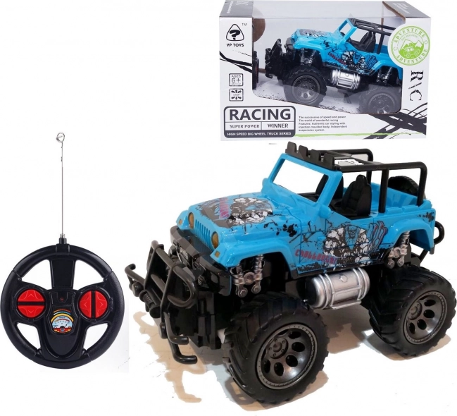 Zabavno terensko vozilo na daljinsko upravljanje v merilu 1:16 za otroke od 6 let. Deluje na frekvenci 27 MHz z dosegom približno 5 m, napajanje na AA baterije (niso priložene); žarometi niso funkcionalni.
