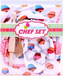 Prisrčen otroški slaščičarski komplet spremeni vsakega malega pomočnika v kuhinji v pravega kuharskega mojstra. Vsebuje predpasnik, kuharsko kapo, rokavico in praktičen pekaški pribor, vključno z valjarjem, leseno žlico, metlico ter kovinskimi modelčki. Odlično za skupno peko, varno igro in razvoj ustvarjalnosti.