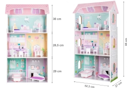Ta izjemna leseničkovna za punčke nudi neskončne ure zabave za vsako deklico in njene prijateljice. Leseničkovna je izdelana ne samo s poudarkom na natančnosti, ampak tudi na varnost otrok. Konstrukcija je brez ostrih robov in nevarnih elementov, uporabljene barve so nestrupene.