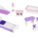 V kompletu je 8 kosov pohištva kot so miza, stol, postelja, omara in drugi, ki jih lahko poljubno premikate.