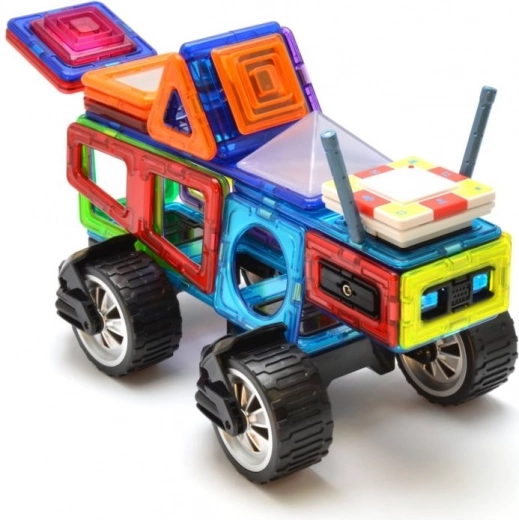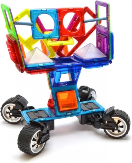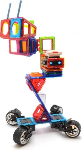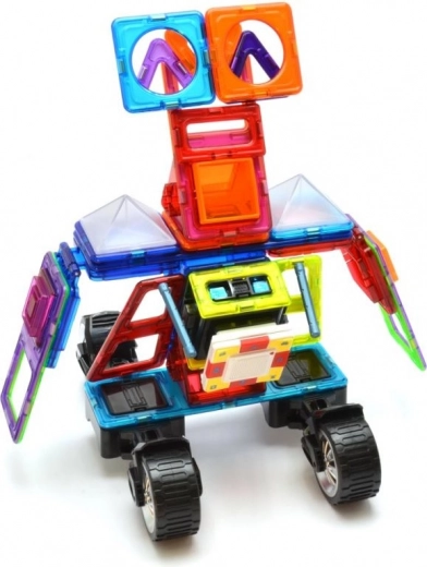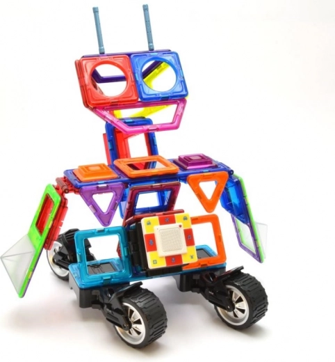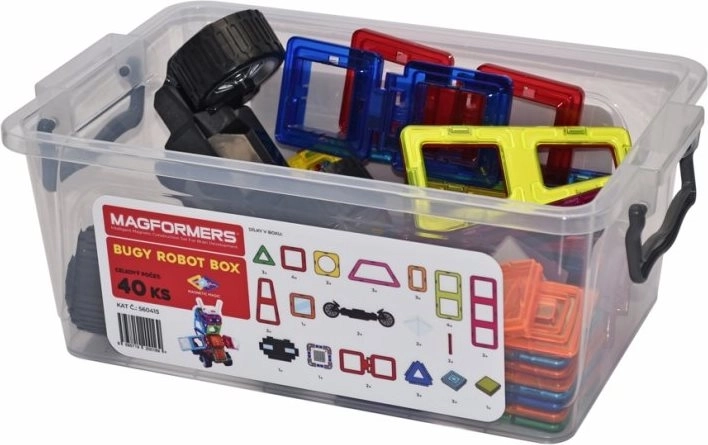 Odkrijte kreativno magnetno sestavljanko MAGFORMERS s 40 kosi in zgradite si premične robote, buggyje, tovornjake in vesoljska vozila. Zahvaljujoč magnetnim elementom, vrtljivim podvozjem in bonus modulom (avdio modul in battery pack) boste uživali v številnih svetlobnih in zvočnih učinkih. Široka kolesa, nastavljive roke s tečaji in združljivost z GEOMAG širijo možnosti gradnje ter razvijajo ustvarjalnost in fino motoriko.