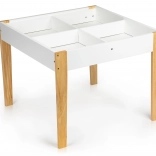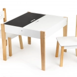 Otroški komplet ECOTOYS vsebuje mizo in dva stola iz borovega lesa in MDF-ja, odličen za otroške sobe ali igralnice. Odstranljiva miza lahko služi kot tabla. Ponuja 4 shranjevalne prostore za boljšo organizacijo igrač.