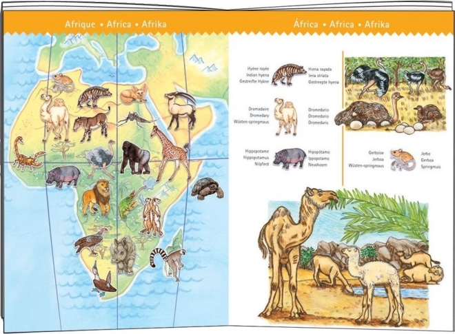 Podajte se na pustolovsko potovanje okoli sveta s sestavljanko DJECO Observation: živali z vsega sveta. Otroci najprej sestavijo sliko, nato pa lahko iščejo in poimenujejo posamezne živali, kar sestavljanko spremeni v zabavno in poučno dejavnost. Priložena brošura v 10 jezikih (ne v češčini/slovenščini) je odlična za učenje tujih jezikov in samostojno iskanje informacij.