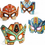 4 maske, 30 listov s kovinskimi detajli, elastike in navodila – vse pripravljeno za ustvarjanje in igro vlog.