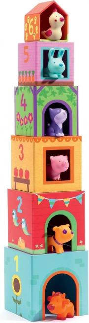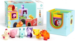 DJeco zložljive kocke so idealna igrača za otroke, ki želijo raziskovati in ustvarjati. Set vsebuje kartonske kocke, ki jih je mogoče zlagati v stolp ali v vrsto. Vsako kocko je mogoče vstaviti v večjo ali obratno.