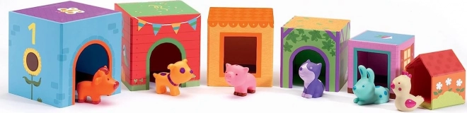Kocke vsebujejo številke in ilustracije, ki otroke učijo prepoznavati barve in živali.