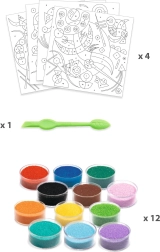 Ustvarite edinstveno in barvno bogato umetnino z uporabo dvanajstih različnih barvnih peskov in posebnega orodja.