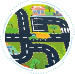 Podroben tisk ulic, križišč in stavb spodbuja domišljijo ter razvija motoriko in prostorsko zaznavo otrok.