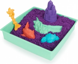 Vključuje 454 g vijoličnega peska, lopatko in različne modelčke za gradove in morske živali. Pladenj vse drži skupaj za lažje pospravljanje.