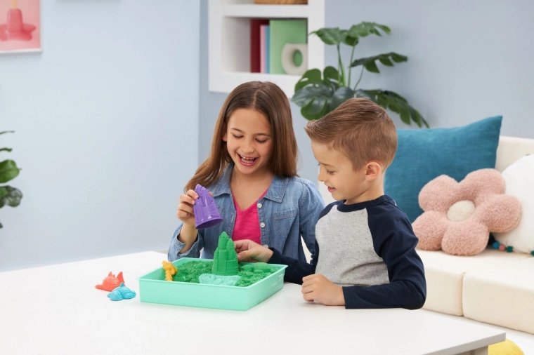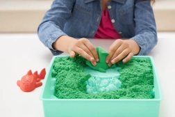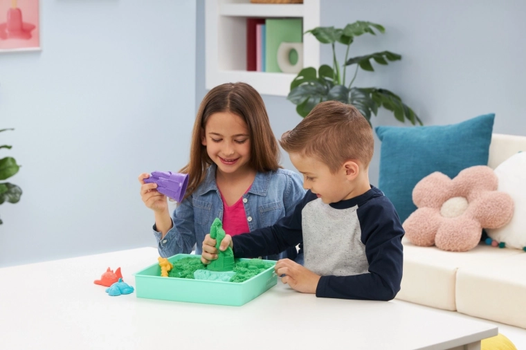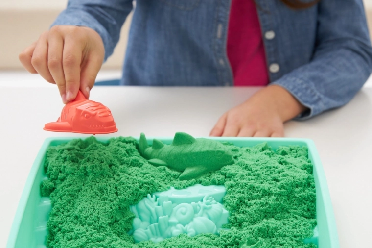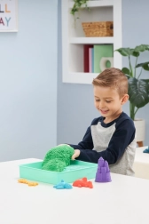 Odkrijte čar senzorične igre z originalnim peskom KINETIC SAND v praktičnem namiznem setu s pladnjem. Ne izsuši se, zlahka se oblikuje in se ne lepi na roke, zato si lahko otroci znova in znova gradijo gradove, živalice in svoje lastne svetove. V kompletu je 454 g zelenega peska, modelčki in lopatka – idealno za ustvarjanje brez nereda doma in na prostem.