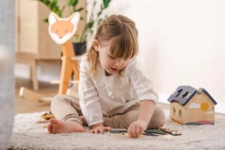 Z vstavljanjem koščkov na pravo mesto otroci na zabaven način razvijajo prepoznavanje oblik, osredotočenost in koordinacijo gibov.