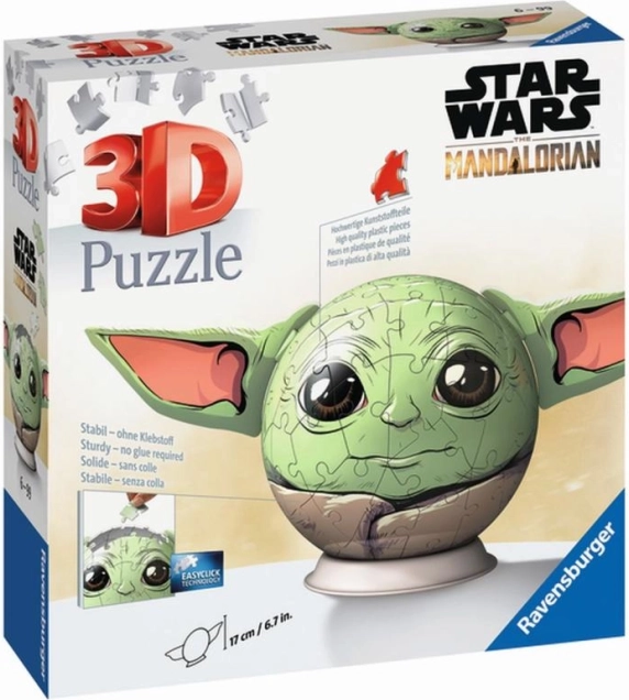 Odkrijte intergalaktično zabavo z 3D sestavljanko Ravensburger STAR WARS Grogu – krogla iz 72 koščkov. Idealno za otroke od 6 let. Zahvaljujoč kakovostnim plastičnim koščkom in natančnemu sistemu zaskočkov ustvarite stabilen 3D model brez lepila. Kompaktna embalaža je priročna za shranjevanje in kot darilo. Uživajte v zabavnem izzivu, 3D konstrukciji in priljubljenem motivu Grogu.