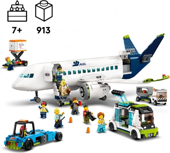 Dobite komplet z letalom, letališkim avtobusom, traktorjem in dostavnim vozilom za hrano, plus devet minifiguric za raznoliko igro.