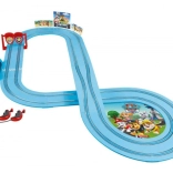 Steza dolžine 2,9 m je opremljena z ravninami, ovinki, zoženjem za morebitne trke in vrtečimi se vrati z dvema propelerjema za še večje vznemirjenje. Zahvaljujoč sistemu sponk je celoten komplet enostavno sestaviti in razstaviti, višinsko nastavljivi nosilci pa zagotavljajo stabilnost. V paketu najdete vse potrebno, vključno z dvema ročnima upravljalnikoma hitrosti in dvema avtomobiloma – Chase in Rubble iz Tačk na patrulji.