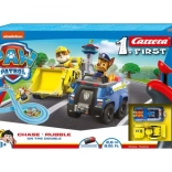 Dirkalna steza Carrera First Tačke na patrulji je odlična izbira za najmlajše dirkače. Zahvaljujoč preprostemu analognemu sistemu, kakovostni izdelavi in uradnim licencam ponuja veliko varne zabave. Avtomobilčki v merilu 1:50 z magnetom in kontaktnimi ščetkami odlično držijo na progi, zato bodo otroci uživali v tekoči in napeti vožnji.