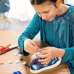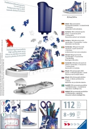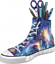 108 trdnih kosov s kozmično grafiko se sestavi v privlačno obliko teniske. Odličen izziv za male graditelje in začetnike v 3D sestavljankah.