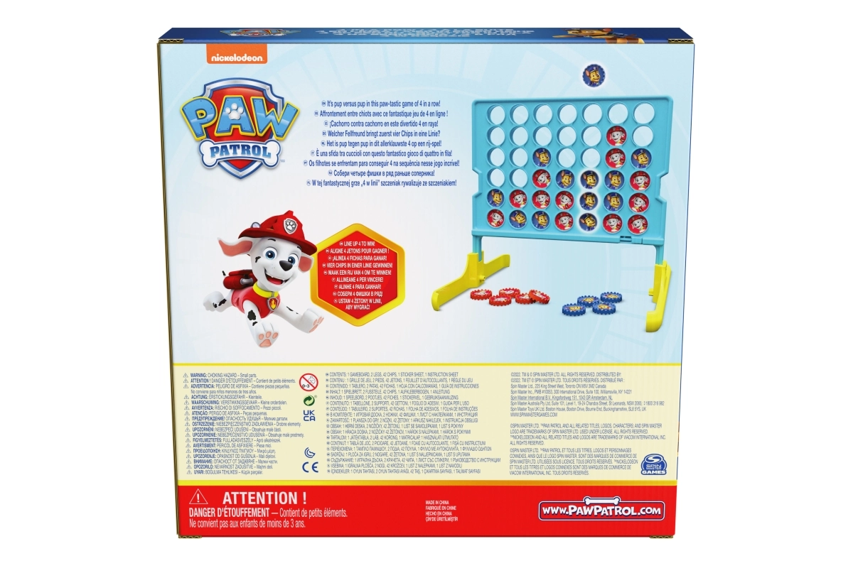 Odlična ideja za darilo za male oboževalce Tačk na patrulji in klasičnih namiznih iger. Pripravite se – kdor prvi sestavi štiri v vrsto, zmaga!