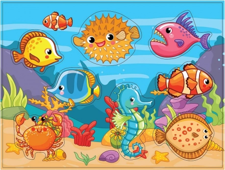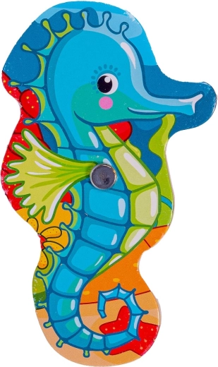 - Lesene sestavljanke jih naučijo prepoznavati barve in oblike ter poimenovati morske živali.