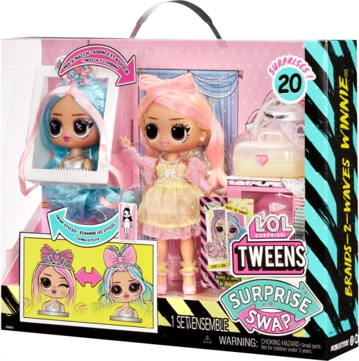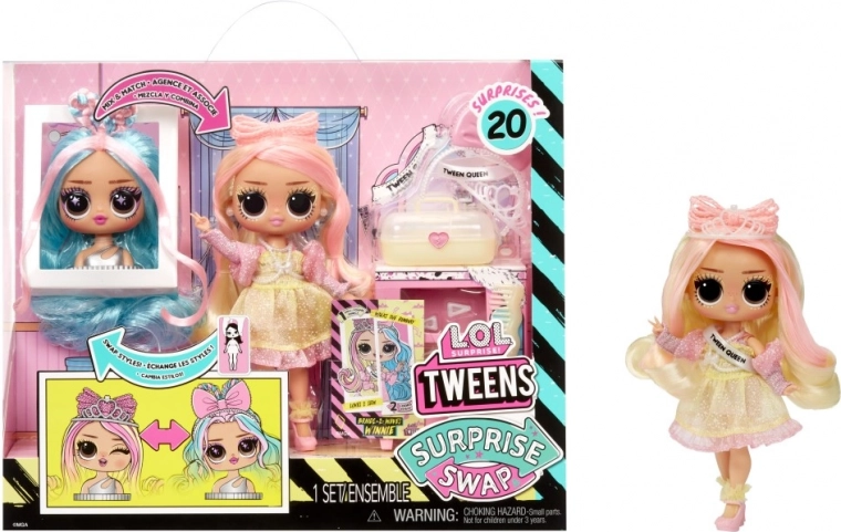 Odkrijte čarobni svet mode in stila s punčko L.O.L. Surprise! Swap Tweens in mini glavo za česanje. Ta komplet ponuja neskončno zabave zahvaljujoč možnosti menjave glav in urejanju pričesk z več dodatki.