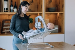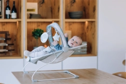 Premišljene podrobnosti, kot so odstranljiv lok z igračkami za razvoj motorike in domišljije, 3-točkovni pas za varno sedenje ter preprosto vzdrževana pralna prevleka, naredijo ležalnik za praktično izbiro za vsak dom.