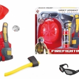 Postanite junak z kompletom gasilca za otroke, ki vsebuje vse potrebno za pisano igro gasilcev: kamizolo, čelado, sekiro, očala, gasilni aparat, pajser in značko.