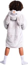 Otroška televizijska mikica COZY NOXXIEZ s kapuco v obliki zajčka združuje toplino odeje in svobodo mikice. Dvojna plast – zunaj mehka flanela, znotraj puhast sherpa flis – bo vaše otroke lepo grela pri gledanju televizije, igri in počitku. Velika kapuca z ušeski in prostoren žep jo naredita igriv in hkrati funkcionalen kos za doma in na prostem.