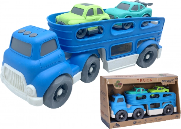 Avto vlačilec za prevoz avtov z dolžino 30 cm in dva majhna avta velikosti 9 cm. Ta model z prosto vrtečimi kolesi je idealen za male ljubitelje avtomobilov.