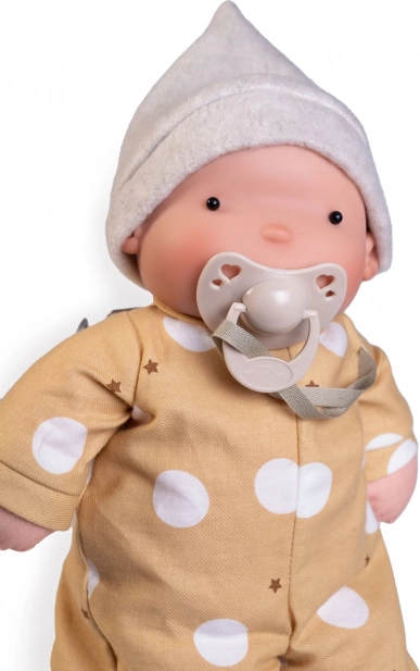 Ta ročno izdelana punčka ARIEL je ustvarjena za nežno crkljanje in prve domišljijske igre. Združuje organske materiale in kakovostno izdelavo: telo in okončine iz organskega bombaža, glava iz 100% silikona ter polnilo iz mehkega PET vlakna iz recikliranih plastenk. Zahvaljujoč magnetni dudi deluje realistično, obenem pa je varna za dojenčke in malčke.