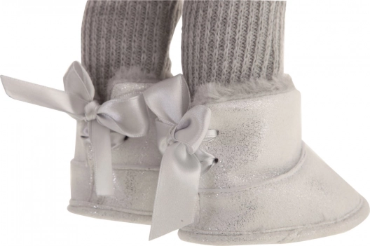 Slogovni čeveljčki za punčke velikosti 40–52 cm dodajo vašemu dojenčku šarm. Srebrni škornji dolžine 8 cm so enostavni za vzdrževanje, so ročno izdelani in priloženi v okrasni embalaži z okencem. Idealen dodatek za deklice od 3 let.