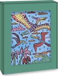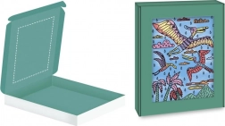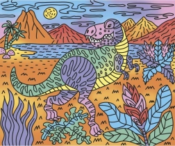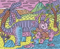 Ta edinstven komplet s tematiko dinozavrov ponuja ustvarjalno izkušnjo za male umetnike. S pomočjo posebnega čopiča, ki ima rezervoar za vodo, lahko otroci postopoma barvajo in opazujejo, kako lepe barve oživijo na papirju. Vsaka slika je podrobno upodobljena in otroci se učijo, kako preprečiti mešanje barv. Ko je slika dokončana, jo lahko uokvirijo v priloženi škatli, kar da otroškim stvaritvam pečat izvirnosti.