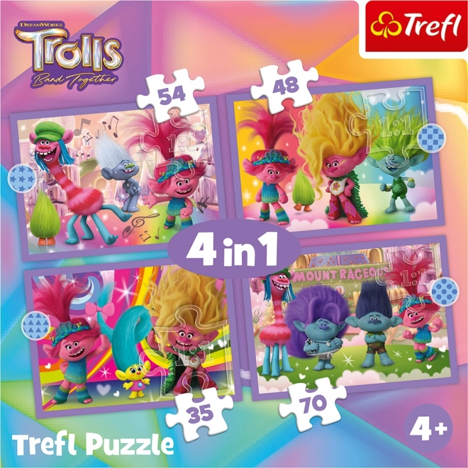Uživajte v zabavi z otroki s kompletom štirih sestavljank znamke Trefl z motivom filma Troli 3: Barvna pustolovščina. Progresivne puzzle ponudijo 4 različne težavnosti (35, 48, 54 in 70 koščkov), po sestavi pa meri vsaka približno 28,5 × 20,5 cm.