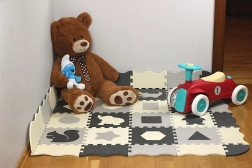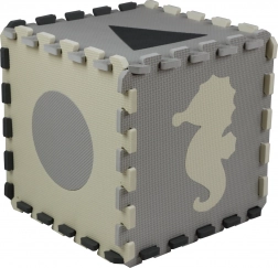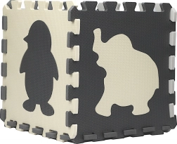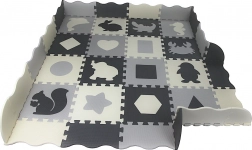 Ta sivo–kremna penasta podloga – sestavljanka spremeni tla v udoben in varen prostor za igro. Izjemljivi sredinski koščki z živalicami in geometrijskimi oblikami spodbujajo fino motoriko ter učenje skozi zabavo. Zaradi debeline 0,9 cm prijetno duši udarce in hrup ter izolira pred mrazom.