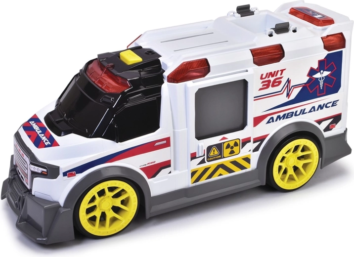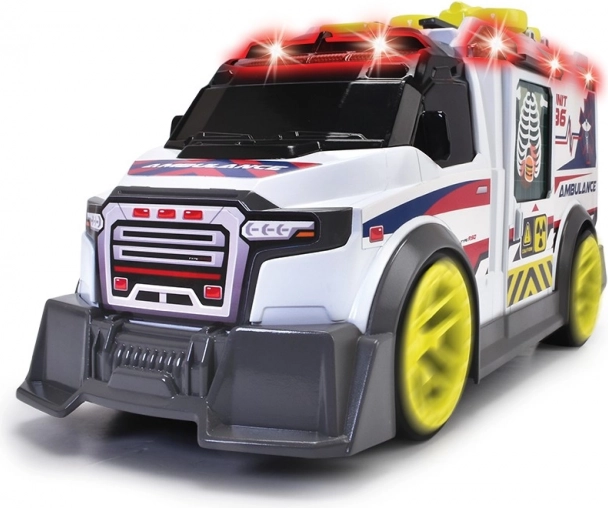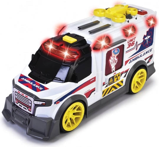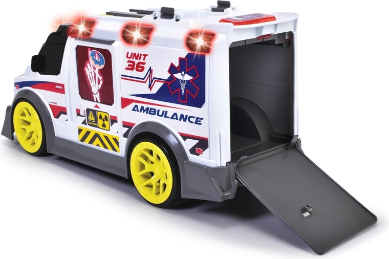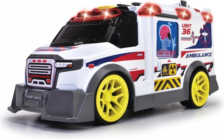 Reševalno vozilo Reševalno vozilo s svetlobnimi in zvočnimi funkcijami. Vozilo ima dele, ki se odpirajo. Komplet vsebuje rentgen, dron, ki ga je mogoče odstraniti s strehe, nosila in prvo pomoč.