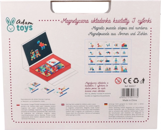 Odkrijte pametno izobraževalno igračo, ki razvija fino motoriko, logično razmišljanje in domišljijo. Otroci sestavljajo figure iz magnetnih puzzlov – kvadratov, trikotnikov, krogov, rombov in drugih oblik; veliko koščkov je označenih s številkami 1–9 za prve korake v matematiki. Kompaktna izvedba v obliki kovčka z ročajem je idealna za zabavo doma in na poti.
