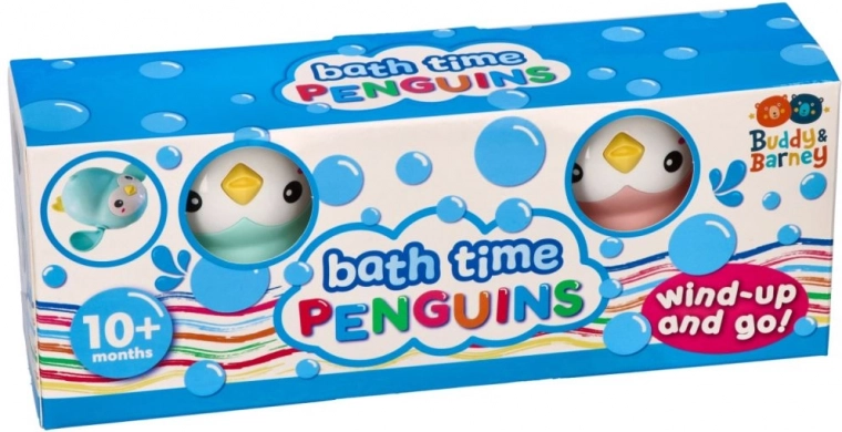 Ljubki pingvini v pastelnih barvah so idealni za vsakodnevno kopanje. Zahvaljujoč preprostemu mehanskemu navijanju brez baterij varno plavajo ter spodbujajo otroke k igri in razvoju fine motorike. Gladke oblike in prijetne barve zagotavljajo, da jih bodo otroci takoj vzljubili.