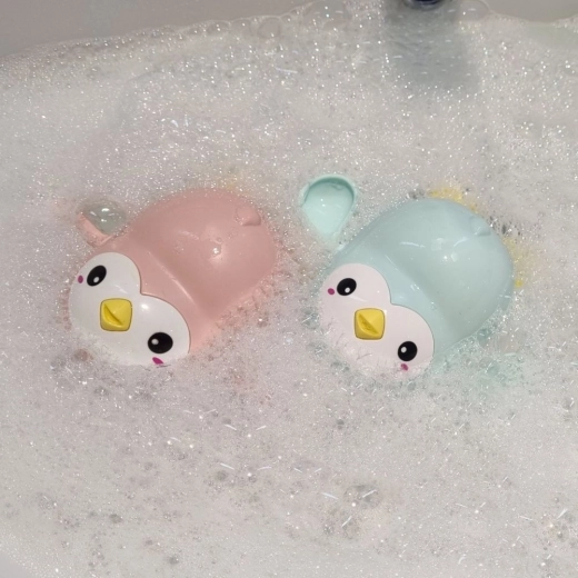 Preprosto zavrtite mehanizem in opazujte, kako pingvini veselo plavajo ter vrtinčijo mehurčke – varna in neskončna zabava v kopeli.