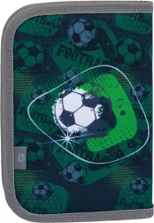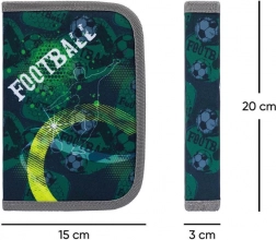 Enoslojna šolska peresnica z nogometnim motivom ponuja dovolj prostora za vse vaše šolske potrebščine, ki jih lahko varno shranite zahvaljujoč kakovostni zadrgi. Eleganten dizajn s silhuetami nogometaša in žog naredi to peresnico popoln dodatek za ljubitelje športa.