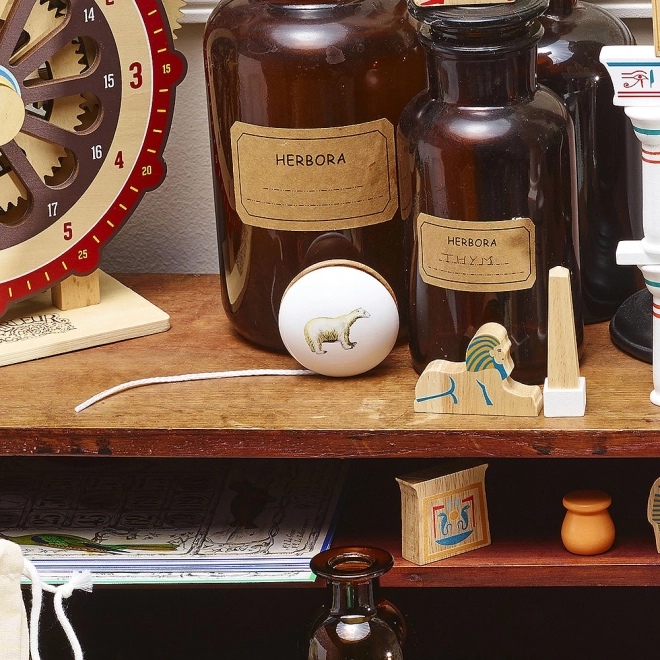Jojo Vilac, navdihnjeno z zbirkami pariškega Muséum national d’Histoire naturelle, prinaša brezčasen dizajn in veselje klasične igre. Ilustracija polarnega medveda se navezuje na dediščino naravoslovnih ilustracij in igračam daje izobraževalno razsežnost. Natančno obdelan in lakiran les zagotavlja gladko delovanje in dolgo življenjsko dobo.