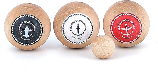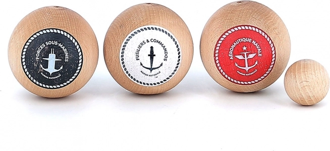 Komplet je izdelan iz masivnega lakiranega lesa, kar zagotavlja prijeten oprijem, dolgo življenjsko dobo in varno igranje za otroke od 5 let naprej. Nastal je v sodelovanju s francosko mornarico in je bil izdelan okolju prijazno, spoštljivo do narave – idealna izbira za odgovorno igro.