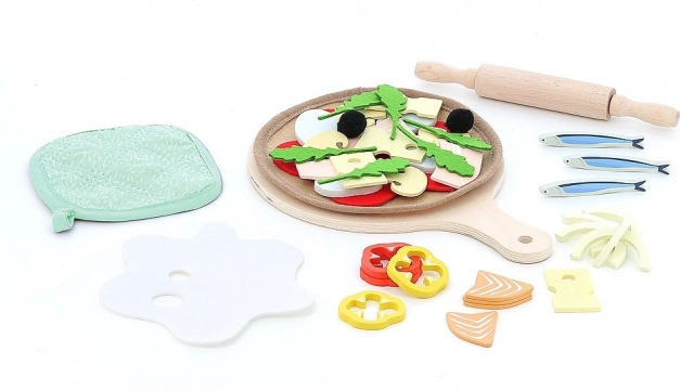 Podarite malim kuharjem avtentično izkušnjo priprave pice. Leseni komplet vsebuje vse, kar je potrebno za “peko” popolne pice – od testa in podlage do pisanih prelivov. Zahvaljujoč prijetnim naravnim materialom je igra varna, trpežna in taktilno privlačna.