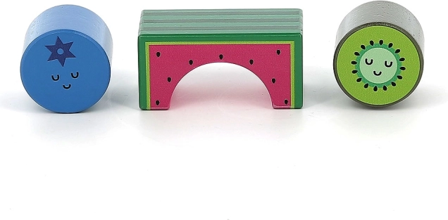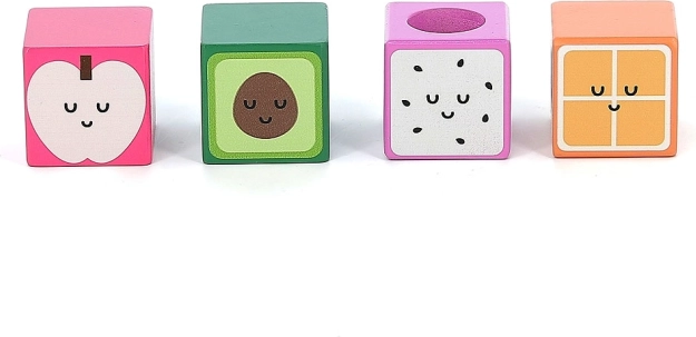 Ta izvirni set 11 lesenih zvočnih kock z veselimi sadnimi motivi otrokom prinaša veliko spodbude za raziskovanje. Vsaka kocka je drugačna – ob stresanju ali potrkavanju oddaja različne zvoke, ki podpirajo senzorični razvoj in radovednost. Zaradi kompaktne velikosti se kocke odlično prilegajo malim rokam in so idealne za prve gradnje, razvrščanje in prosto igro.