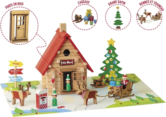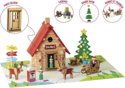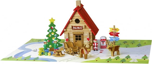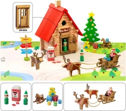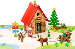 Ta tematska sestavljanka prinaša otrokom vzdušje severnega tečaja naravnost v sobo. Postavite Santovo kočo, razporedite figurice škratov, vprezite jelene v sani in okrasite prostor z božičnim drevescem z darili. Zahvaljujoč natančnim lesenim delcem je sestavljanje zabavno ter razvija fino motoriko, potrpežljivost in ustvarjalnost.