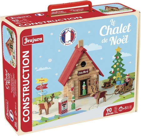 Odkrijte čar božiča z leseno sestavljanko JEUJURA – Božična koča z 90 deli. Zgradite svojo zimsko sceno s Santovo hišico, škrati, sanmi z jeleni in božičnim drevescem. Sestavljanka je izdelana iz kakovostnega masivnega lesa v Franciji in pakirana v praktičnem kovčku. 90 delov iz masivnega lesa, božični motiv s Santom, ekološke barve na vodni osnovi, praktična embalaža z navodili.