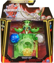 Začetni komplet s 3 bojevniki Bakugan iz serije 6. Paket vsebuje 1 Bakugan poseben napad (vrtenje), 1 obroč, 1 vlečno vrvico, 2 Core Bakugan, 3 karte likov, 2 Gate karti, 1 karto posebnega napada, 3 Brawler karte, navodila in pravila. Primerno od 6 let.