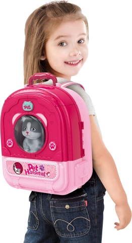 Bolnišnica za hišne ljubljenčke je odličen način za razvijanje domišljije in skrbi za živali pri otrocih. Vključuje odprt nahrbtnik z dimenzijami 50x35x30 cm, v katerem najdete: