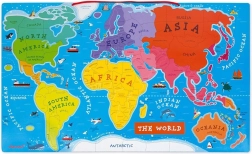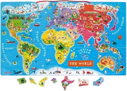 Ta čudovit magnetni zemljevid sveta meri 77 x 46 x 1 cm in vsebuje 92 lesenih kosov sestavljanke. Vsak kos predstavlja regijo ali državo, nosi ime glavnega mesta in vključuje ilustracijo, ki predstavlja značilnosti kraja, kot so znamenite stavbe, spomeniki, živali in rastline. Zemljevid je v angleškem jeziku in ga je mogoče obesiti na steno, zato je edinstven okras otroške sobe.