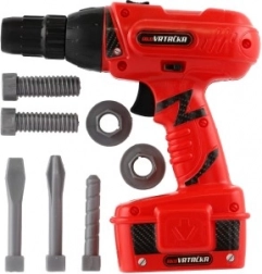 Akumulatorski vrtalnik za otroke, ki poskrbi za veliko zabave pri igri na domača popravila. Vsebuje zamenljive nastavke in oddaja realistične zvoke vrtanja.